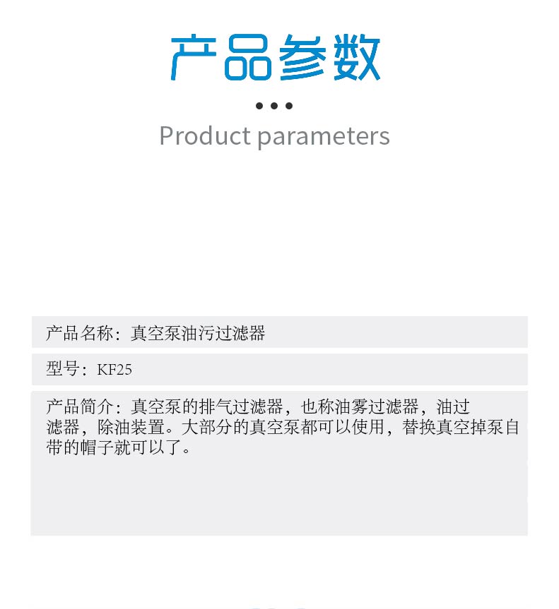 真空泵的排氣過濾器,也稱油霧過濾器,油過濾器,除油裝置。大部分的真空泵都可以使用,替換真空掉泵自帶的帽子就可以了。